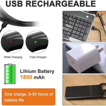 The Sew Glow Neck Light is rechargeable via the USB cord provided.